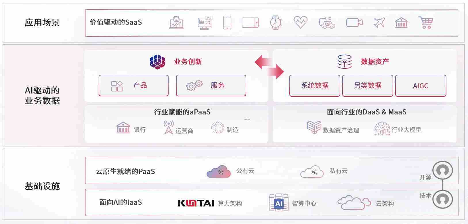 数字时代,,,围绕企业数字化转型的关键要素,,意昂2数码开创性的提出数云融合战略和技术体系框架,,,着力在云原生、、数字原生、、AI原生和信创产业上架构产品和服务能力,,为处在不同数字化转型阶段的快消零售、、汽车、、、金融、、、、医疗、、、政企、、、教育、、、运营商等行业客户提供泛在的敏捷IT能力和融合的数据驱动能力,,构建跨界融合创新的数字业务场景和新业务模式,,,,助力企业级客户建立面向未来的核心能力和竞争优势,,全面推动社会的数字化、、智能化转型升级。。